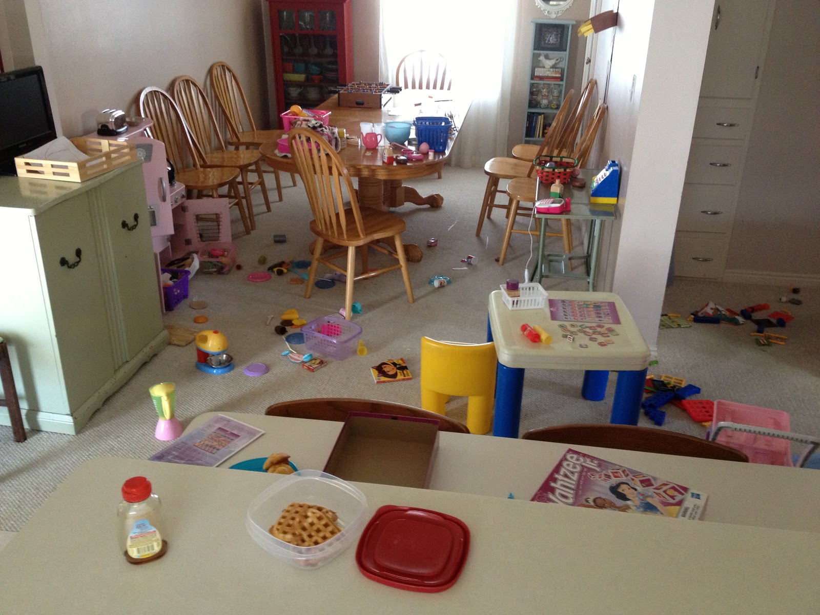 >>I showered before Danny woke up. That doesn't happen very often. I even had my hair and make-up done before the play date friends came over. That almost never happens. Cousin Ray Ray came over too so we had a full house. I resisted the urge to walk around cleaning up after them. See what happened because of that decision...